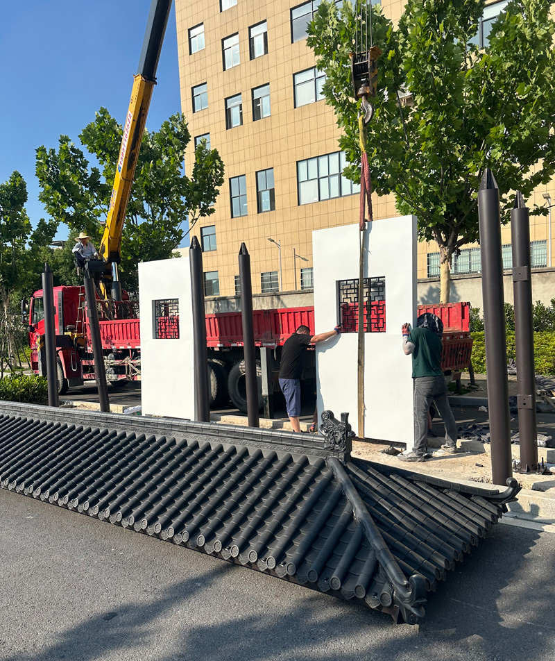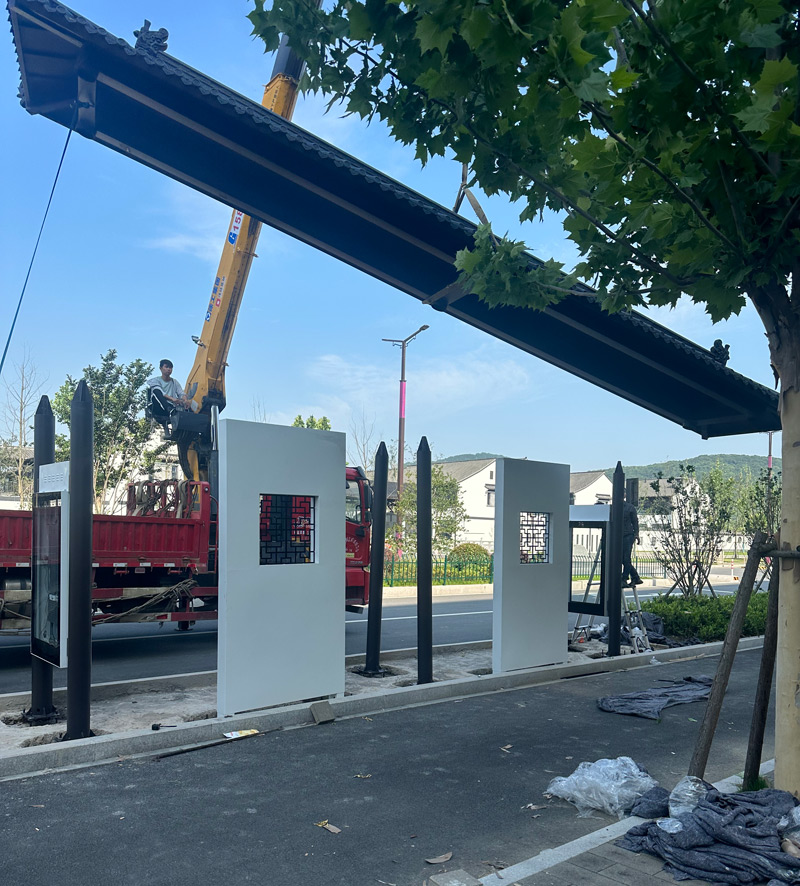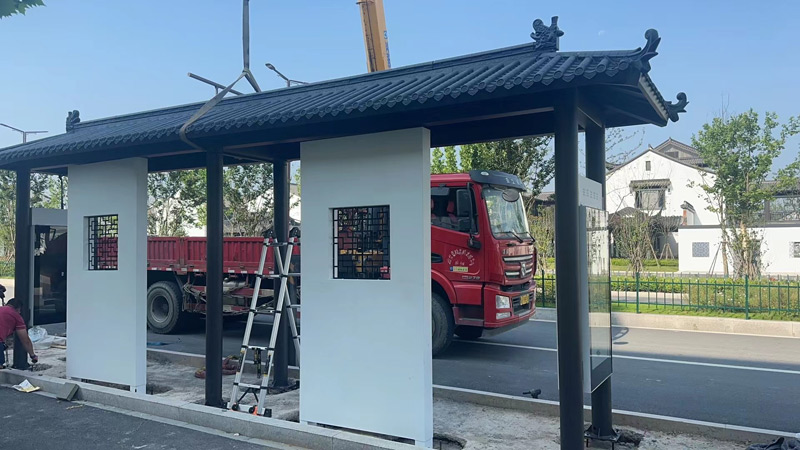浙江杭州智慧仿古候車亭發貨、現場安裝中